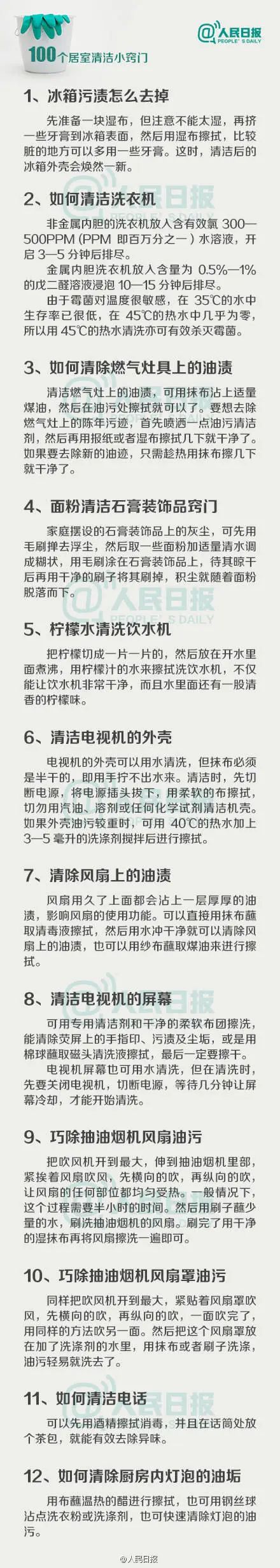 人民日報權威推薦| 100個(gè)居室清潔小竅門(mén)!
